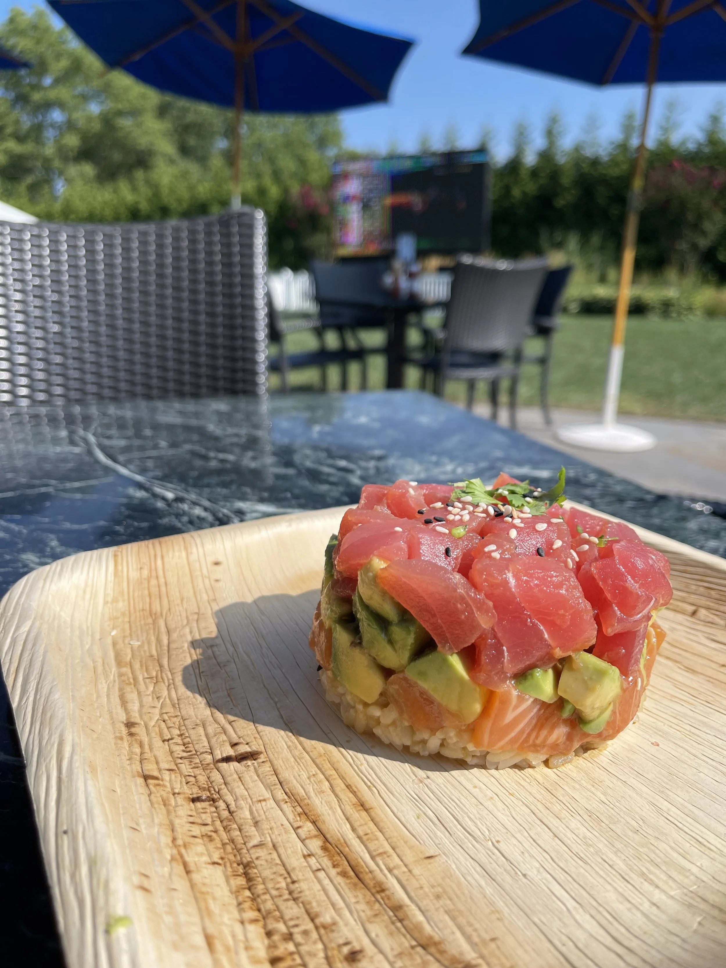 Pat & Lola’s Garden Bar serves classic American bar food like burgers and wings plus a full sushi menu in a casual all-outdoor setting!
